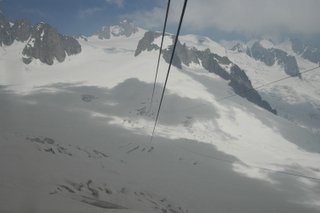 We took the cable cars to Italy for lunch, then rode back across the glaciated Alps and had dinner in Chamonix.